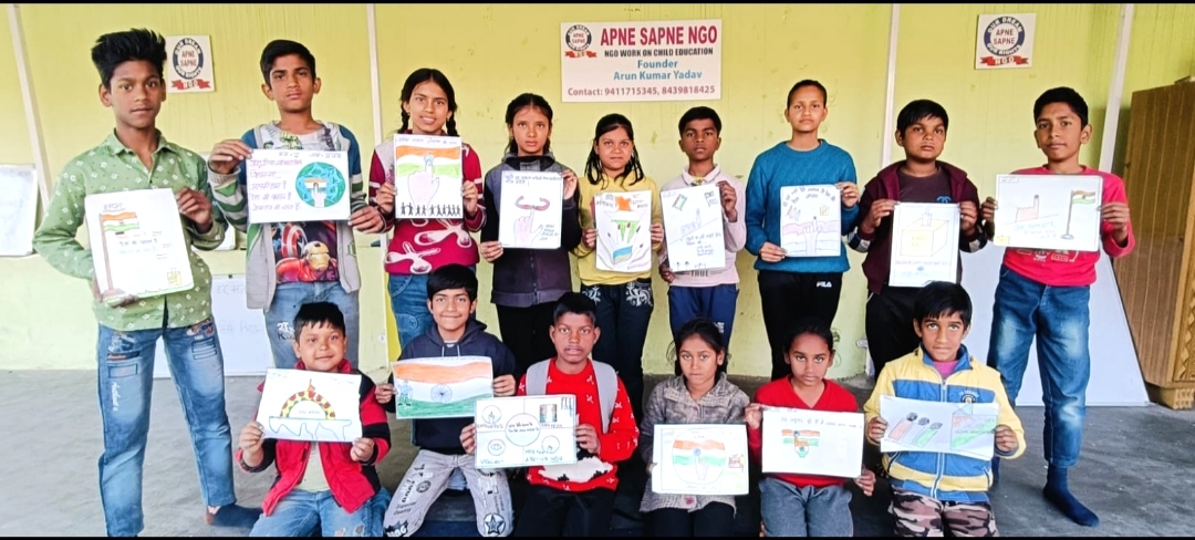 इस बीच संस्था के बच्चों ने जागरूकता एवं हर किसी के जीवन मे मतदान के महत्व को अपने कला से बताने की कोशिश किया | बच्चों ने मतदान के प्रति स्लोगन और आर्ट के माध्यम से अपने कला को प्रदर्शित किये | इसी क्रम में “मेरे भविष्य के लिए मम्मी पापा वोट देने जरूर जाना ” छोटे से बच्चे सुदीश की आर्ट ने लोगो का दिल जीत लिया | मतदान जागरूकता को लेकर आयोजित कार्यक्रम में अजित, सूरज, अनूप, अर्जुन, विजय, अमित, अनुष्का, संध्या, मुस्कान, दीपांशु , अजय , जैनब, आदि बच्चों ने अपने विचार आर्ट के माध्यम से प्रकट किये |